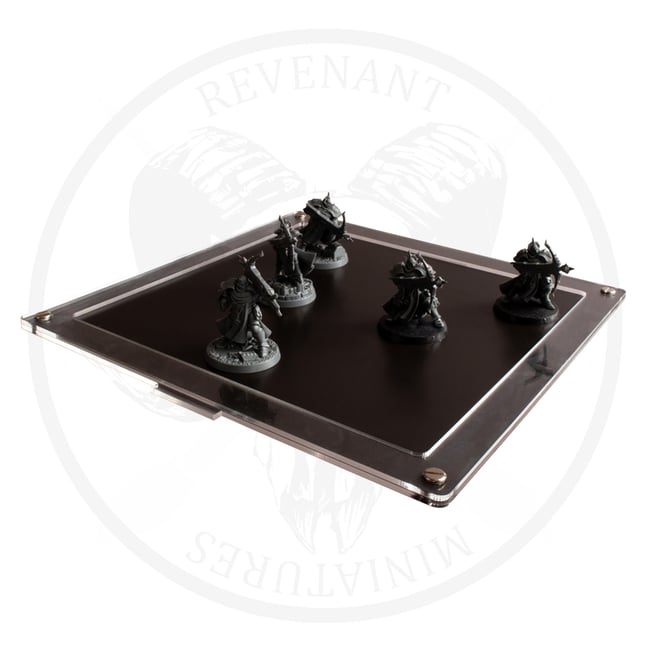 A removable tray to hold your miniatures in place which is secured when door is closed and locked.